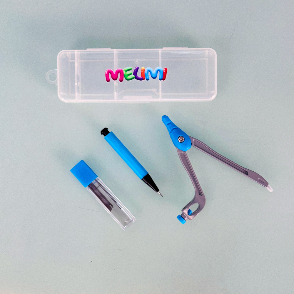 Compasul MELIMI #1 este un set de geometrie practic și complet, ideal pentru școală, teme și activități educative. Setul este conceput pentru elevi și oferă instrumentele esențiale necesare trasării cercurilor și lucrului precis la orele de matematică și geometrie.
