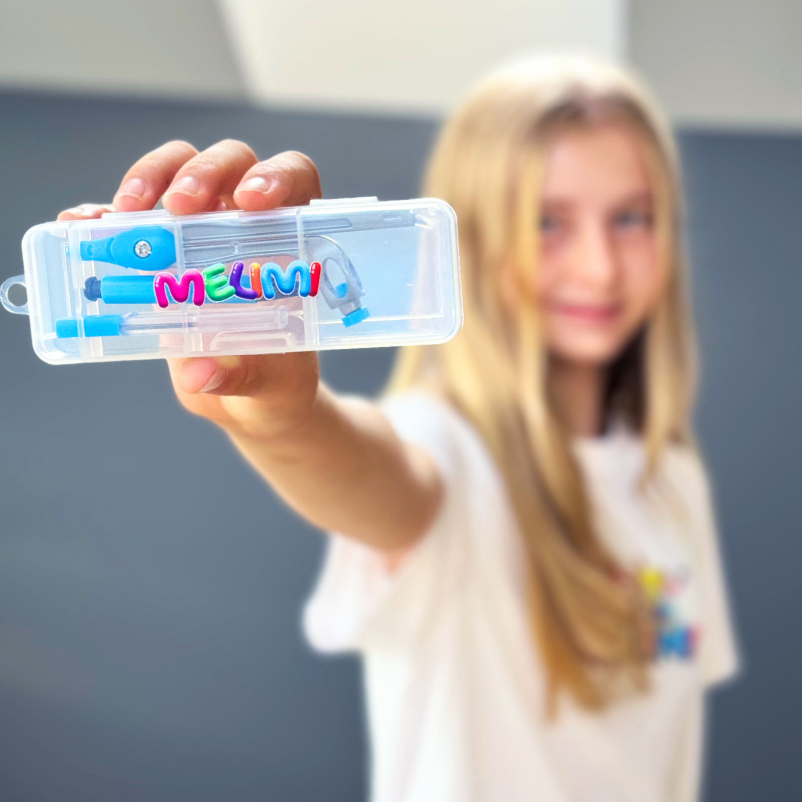 Designul compact și materialele ușoare fac setul MELIMI #1 ușor de transportat în penar sau ghiozdan. Logo-ul MELIMI imprimat pe cutie oferă un aspect modern și ușor de recunoscut.